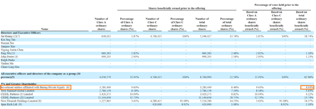 In the table above, there are only two shareholders without a clear relationship with directors. These are Baring Private Equity and New Summit Global Limited controlling 4.04% and 3.43% of the total outstanding shares respectively.